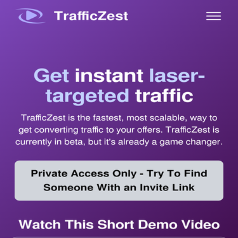 TrafficZest is the fastest, most scalable, way to get converting traffic to your offers. TrafficZest is currently in beta, but it's already a game changer. This is the same traffic that makes us money...every.single.day!