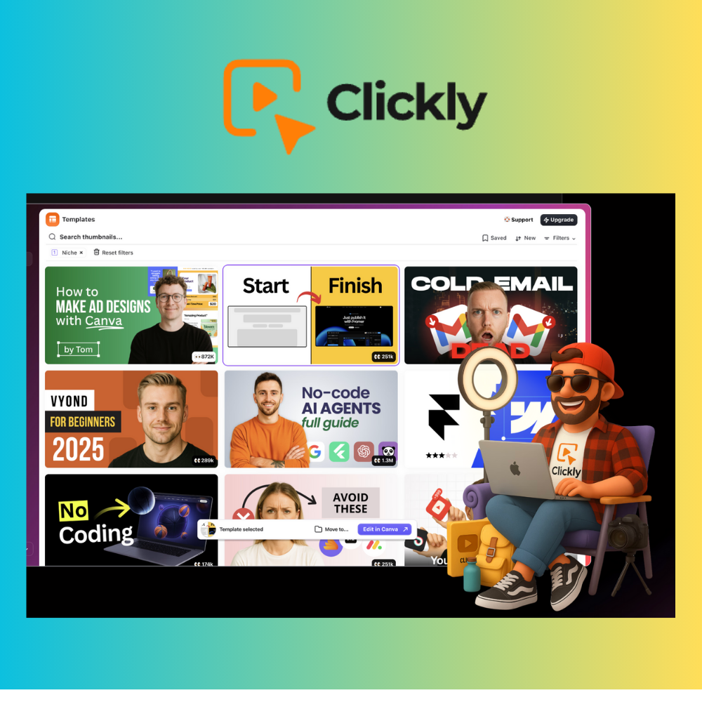 Clickly AI is an AI-powered YouTube thumbnail creation platform built around one simple but extremely powerful idea. Clickly uses real-world performance data. Its entire system is modeled after thumbnails from YouTube videos that already generated 100,000 to over 2 million views. “This design already worked for thousands of people. That shift alone makes Clickly fundamentally different from tools like Canva, Photoshop templates, or generic AI design platforms. Clickly is not a design tool. It is a YouTube performance tool.